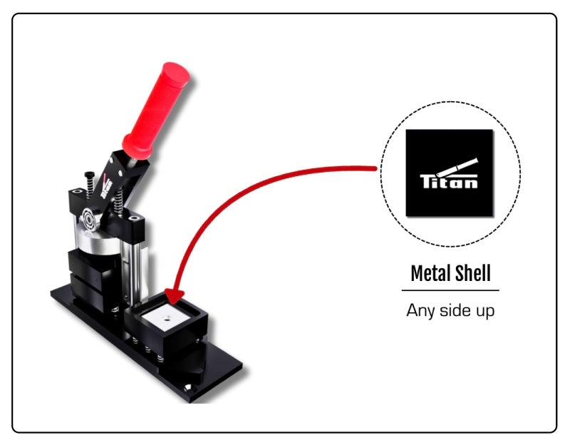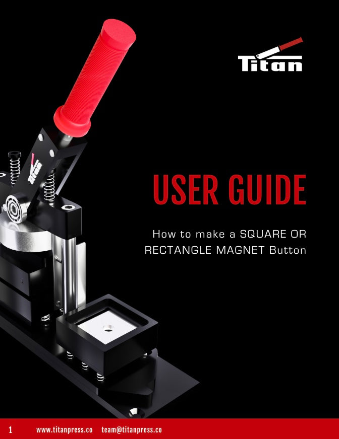 Professional square magnet and button making equipment. Make 2.5x2.5 magnets and pins using Titan Press Press and Paper Cutter.