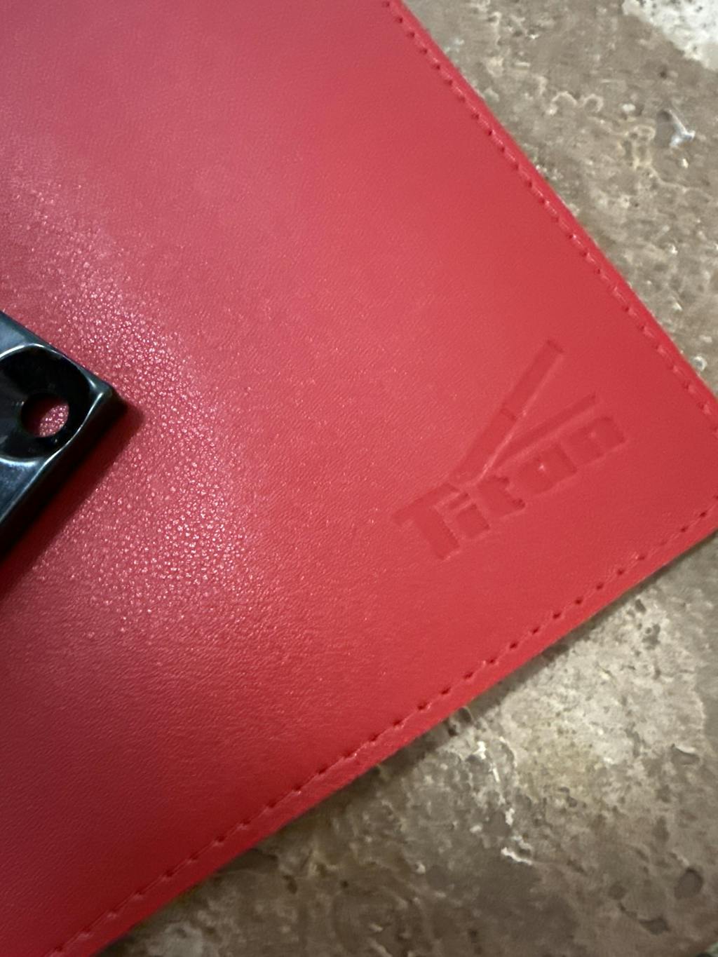 Made from high-quality PVC leather with stitched edges and an embossed logo.